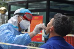8月18日,在伊力特公司釀酒一廠廠門口前,住廠員工正按照疫情防控要求,有序進行核酸檢測。