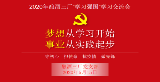 查看詳情“騏驥一躍,不能十步;駑馬十駕,功不在舍!”“學(xué)習(xí)強(qiáng)國”,強(qiáng)在“樂學(xué)”,強(qiáng)在“善學(xué)”,強(qiáng)在“堅(jiān)持”!為進(jìn)一步深入學(xué)習(xí)貫徹習(xí)近平新時(shí)代中國特色社會(huì)主義思想,充分發(fā)揮好“學(xué)習(xí)強(qiáng)國”學(xué)習(xí)平臺(tái)的學(xué)習(xí)載體作用,持續(xù)掀起“學(xué)習(xí)強(qiáng)國”學(xué)習(xí)平臺(tái)學(xué)習(xí)熱潮,2020年5月15日,釀酒三廠黨支部舉行“學(xué)習(xí)強(qiáng)國”交流會(huì),共有28人參加。