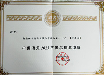 伊力特實業股份有限公司生產的52度伊力王酒被中國釀酒工業協會評定為“中國酒業2013中國名酒典型酒”